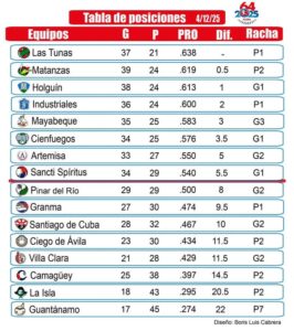 Sancti Spíritus marcó dos carreras en la parte alta del onceno inning y se impuso estrechamente a los Leñadores de Las Tunas con pizarra de 6-5 para lograr su primera sonrisa en este duelo particular que favorece momentáneamente a los locales 2-1.